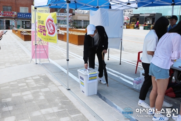 세종YMCA가 9일 제19대 대통령선거에 투표권이 없어 참여하지 못하는 만 18세이하 청소년들과 함께하는 모의투표를 세종시 조치원역에서 실시하고 있다. 모의투표는 지난 4~5일 온라인 사전투표로 진행됐으며 대선 당일인 9일엔 전국 30개 투표소에서 현장투표와 함께 홈페이지(www.18vote.net)에서 온라인 투표도 병행한다./아시아뉴스통신=홍근진 기자