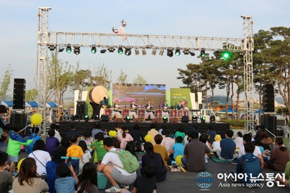 | 20일 노무현재단 대전세종충남지역위원회가 세종시 호수공원 매화공연장에서 개최한 노무현 대통령 서거8주기 추모 시민문화제 ‘사람사는 세상’을 여는 이음의 ‘대북공연’./아시아뉴스통신=홍근진 기자 |