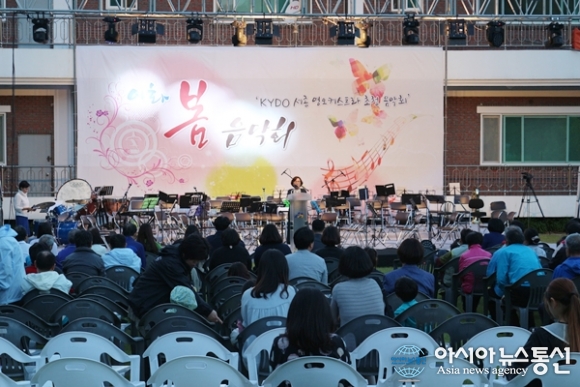 | 25일 세종시 전동면 솔티고개에 있는 사회복지법인 이화 잔디마당에서 박은주 전 MBC아나운서의 진행으로 KYDO세종영오케스트라 초청 음악회가 열려 박정자 이화 대표가 인사말을 하고 있다. 올해로 일곱번째를 맞는 음악회는 문화소외계층인 시설장애인들에게 클래식을 접할 수 있는 기회를 제공하고 있다./아시아뉴스통신=홍근진 기자 |