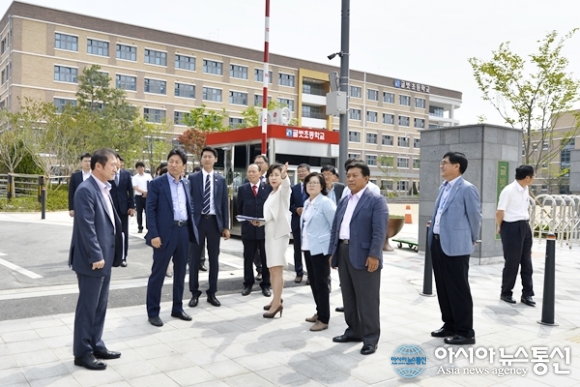 교육위원들은 먼저 행정사무감사에 앞서 학교 통학로 안전점검을 위해 글벗초, 새움중, 새뜸초 통학로를 방문해 학교 관계자로부터 통학로 안전과 관련한 의견을 수렴했다.