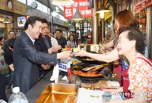 이낙연 국무총리가 일요일인 4일 종로구 통인시장을 찾아 시민들과 소통하고 시장상인들을 격려하는 행보를 보였다.