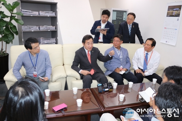 | 5일 이낙연 국무총리가 취임 후 처음으로 정부세종청사를 방문하고 기자실에서 출입기자들과 간담회를 하고 있다./아시아뉴스통신=홍근진 기자 |