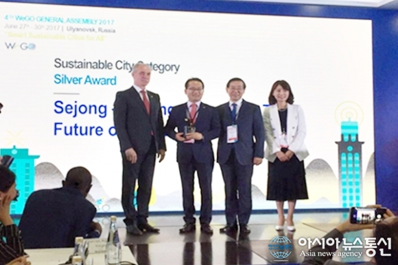 세종시가 제4차 WeGO(세계도시전자정부협의체) 총회에서 스마트시티 어워드 ‘지속가능한 도시부문’에서 은상을 수상했다.