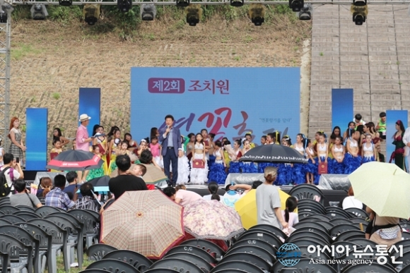 | 8일 세종시 조치원 연꽃공원 일원에서 제2회 조치원 연꽃축제가 밸리페스티벌, 버스킹, 콘서트, 체험부스 및 플리마켓존, 연꽃 셀카 및 디카 콘테스트, 주민자치 작품 전시 등의 프로그램으로 운영됐다. 밸리페스티벌 시상식에서 석원웅 세종시 체육회 사무총장이 인사말을 하고 있다./아시아뉴스통신=홍근진 기자 |