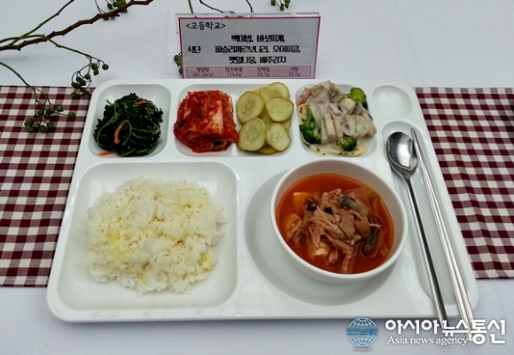| 지난해 9월 7일 세종시청에서 열린 로컬푸드 공공급식 선포식에서 선보인 고등학교 학교급식 표준모델 중 하나./아시아뉴스통신=홍근진 기자 |