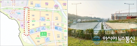 | 행복청이 태양광 발전사업을 추진하고 있는 세종시 신도시 2-1생활권 외곽순환도로 방음터널 모습.(사진제공=행복청) |