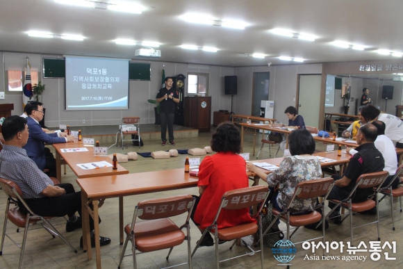 | 사상구 덕포1동 희망디딤돌 복지공동체는 지난 10일 복지공동체 위원 20명을 대상으로 삼성EFR 전문 강사를 초빙해 ‘응급처치 교육’을 실시했다.(사진제공=사상구청) |