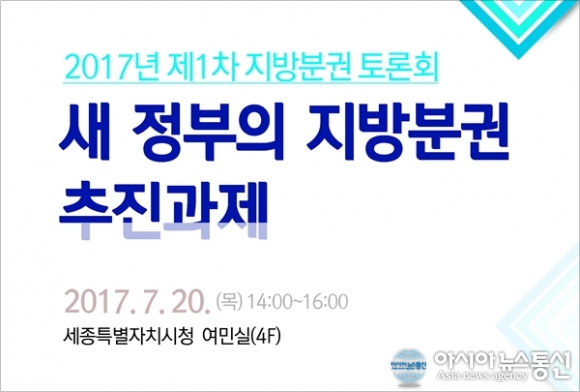 오는 20일 오후 2시부터 4시까지 세종시청 4층 여민실에서 2017 제1차 지방분권 토론회가 열린다.