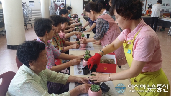 | 지난 12일 사상구 주례3동은 동 주민센터에서 마을어르신과 함께하는 ‘힐링원예교실’을 열었다.(사진제공=사상구청) |