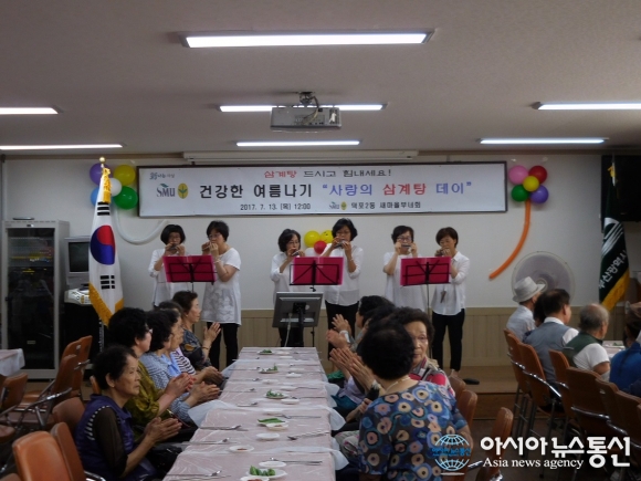 사상구 덕포2동 새마을부녀회(회장 성경순)는 지난 13일 동 주민센터에서 초복을 맞이해 어르신 60여명을 모시고 ‘삼계탕 데이’ 행사를 개최했다고 밝혔다.