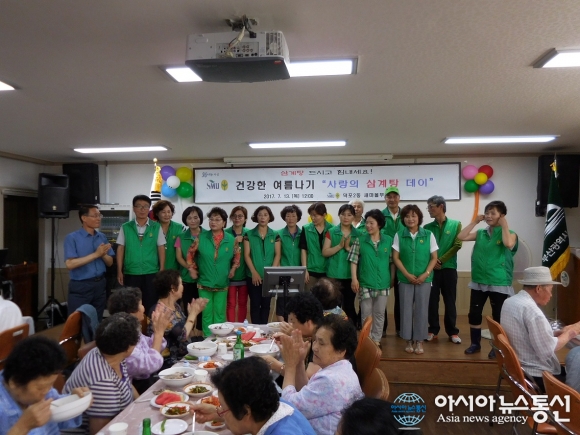 최근 폭염으로 더위에 지친 어르신들에게 삼계탕과 과일 등 음식을 대접하고, 여름철 건강 유의를 당부하며 건강한 여름나기를 희망했다.