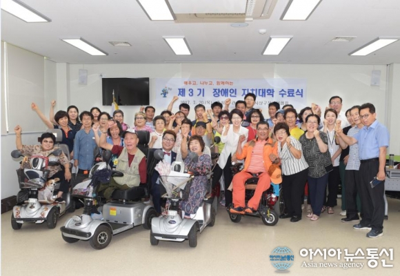 사상구(구청장 송숙희)는 지난 20일 오후 4시 사상구장애인협회 회원 등 40여명이 참석한 가운데 ‘제3기 장애인 자치대학’ 수료식을 개최했다고 밝혔다.