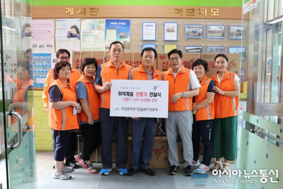 학장동 희망디딤돌 복지공동체(위원장 홍우재)는 지난 20일 노인, 장애인 등 취약계층 15세대에 선풍기를 전달했다고 밝혔다.
