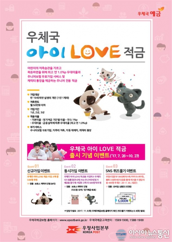 | 충청지방우정청이 이달 28일 출시하는‘우체국 아이 LOVE 적금’.(사진제공=충청지방우정청) |