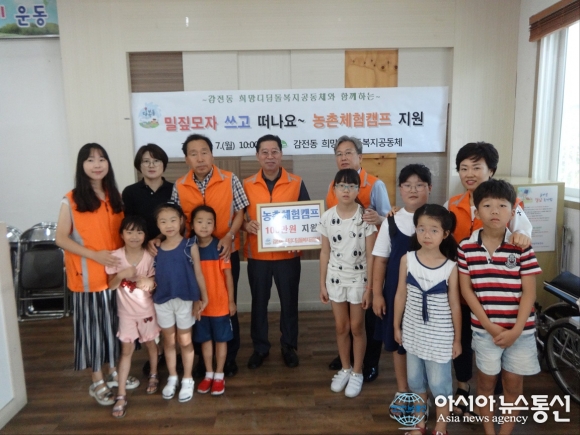 | 7일 감전동 희망디딤돌 복지공동체는 여름방학을 맞은 관내 지역아동들에게 농촌체험캠프비 100만원을 지원했다.(사진제공=사상구청) |