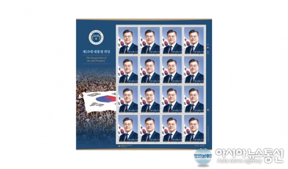 우정사업본부에서 오는 17일 발행하는 제19대 문재인 대통령 취임 기념우표.(사진제공=청와대)