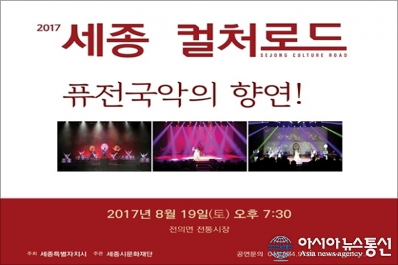 세종시 문화재단은 오는 19일 오후 7시 30분 전의면 전통시장 주차장에서 찾아가는 아트트럭 ‘퓨전국악의 향연’을 공연한다고 16일 밝혔다.