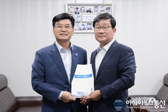 | 이춘희 세종시장이 28일 개헌 논의가 진행중인 국회를 방문 전해철 국회 개헌특위 위원(55.더민주당.전남 목포)을 만나 ‘행정수도 개헌’의 당위성을 설명하고 협조를 당부했다. 이 자리에서 이 시장은 “행정수도를 둘러싼 논의를 완결하기 위해서는 헌법 조문에 행정수도를 명시하고 국민의 뜻을 물어야 한다”고 강조했다. 세종시는 29일 시청에서 행정수도 완성 대토론회를 개최하고 다음달에는 국회에서 토론회를 열어 국민적 공감대를 확보해 나간다는 계획이다.(사진제공=세종시청) |