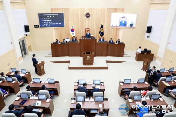 | 1일 세종시의회(고준일 의장)는 15일 동안의 회기로 제44회 임시회를 개회했다. 이번 임시회에서는 추가경정예산안과 조례안 및 기타 안건 등을 심사한다.(사진제공=세종시의회) |
