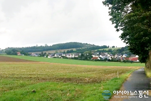 | 독일 데트몰트에서 하멜른으로 가는 길에 펼쳐지는 구릉지대에 시골 마을이 보이고 있다.(사진=강명구) |