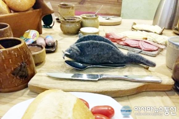 | '피리 부는 사람' 전설이 있는 하멜른에서 아침 밥상에 올라온 쥐모양의 삶은 계란 용기.(사진=강명구) |
