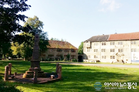 | 구 동독 지역 헬름슈테트 대학교로 쓰였을 법한 건물 앞에 독수리 상이 세워져 있다.(사진=강명구) |
