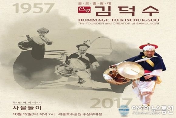 | 다음달 12일 오후 7시 세종시 호수공원에서 열리는 김덕수 사물놀이 홍보 포스터.(사진제공=세종시청) |
