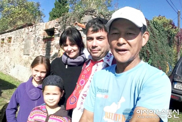 | 체코의 체르베니 우예지트라는 마을에서 열리는 축제에 참가해 주민들과 사진을 찍었다.(사진=강명구) |
