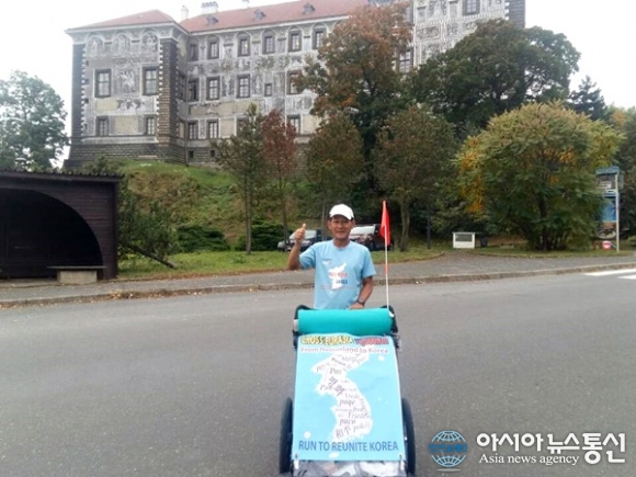 무한 질주의 독일의 아우토반에 멈춰 서서 교통체증을 유발하는 자동차에 불과했던 나는 들판을 달리는 야생마처럼 자신의 아름다움을 과시하는 생명이 된다. 긴 겨울을 준비하며 붉게 물든 나뭇가지 위로 휘감아 부는 돌풍이 최고의 고음을 내면 달리는 발걸음도 절정에 이르게 된다. 음표들이 상승과 하강을 반복하듯이 발걸음도 길 위에서 격렬하게 상하운동을 하게 된다. 육체가 최고점에 이르렀을 때 거기서 흘러나오는 절정의 인간정신을 축출하여 씨줄과 날줄로 엮어 나의 삶을 재생시키고, 사람들과 함께 평화통일의 신세계를 가꾸어나가는 것이다.