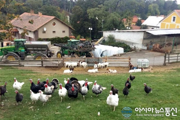 | 체코의 테플리체에서 넬라호제베스로 가는 길목에 농가에 칠면조와 염소들이 놀고있다.(사진=강명구) |