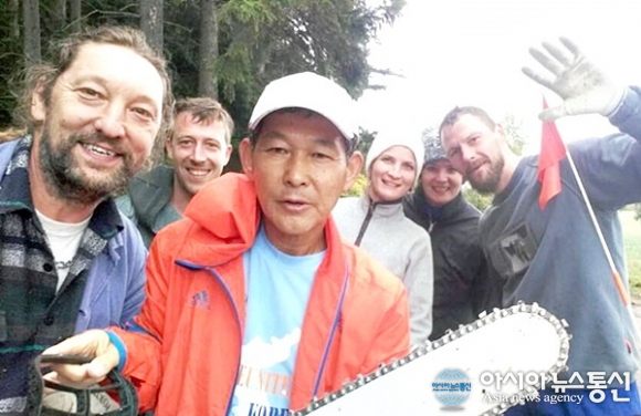 | 데슈트나로 가는 길목에 숲속에서 남자 셋에 소녀 둘인 벌목꾼들을 만나 사진을 찍었다.(사진=강명구) |
