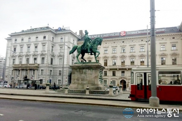 | 왈츠의 경쾌하고 달콤한 선율이 흐르는 듯한 오스트리아 비엔나 거리에 있는 기마 동상.(사진=강명구) |
