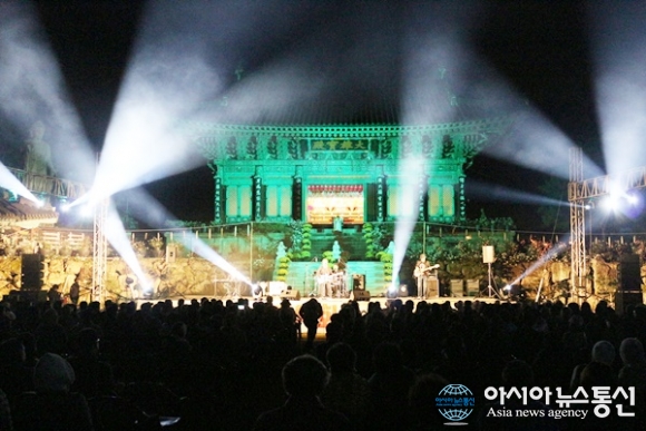| 14일 세종시 장군면 영평사에서 구절초 꽃축제를 마감하는 산사음악회가 열려 쌀쌀한 날씨에도 불구하고 참석한 1000여명의 시민들이 깊어가는 가을 밤 정취를 만끽하고 있다./아시아뉴스통신=홍근진 기자 |