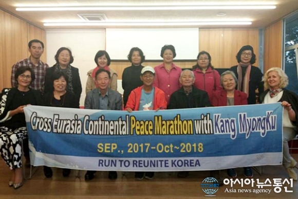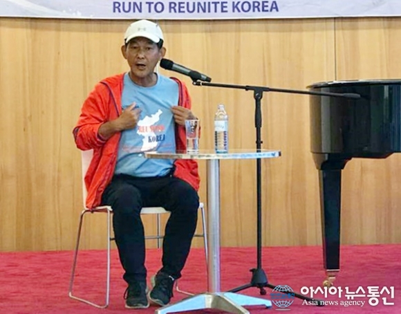 | 오스트리아 교민들에게 통일을 생각하며 이번 마라톤을 시작하게 됐다고 강연을 했다.(사진=강명구) |