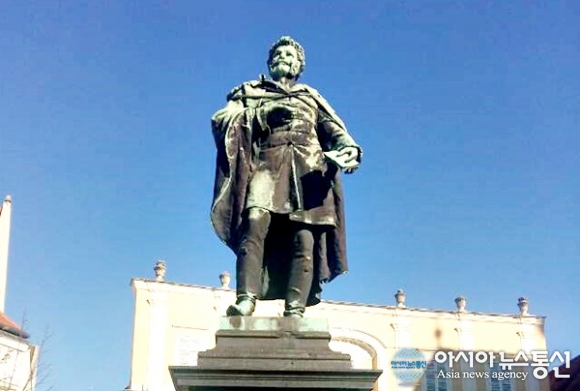 | 헝가리는 흉노족 후예인 훈족이 세운나라다. 극작가이며 예술가 Kisfaludy Karoly 동상.(사진=강명구) |