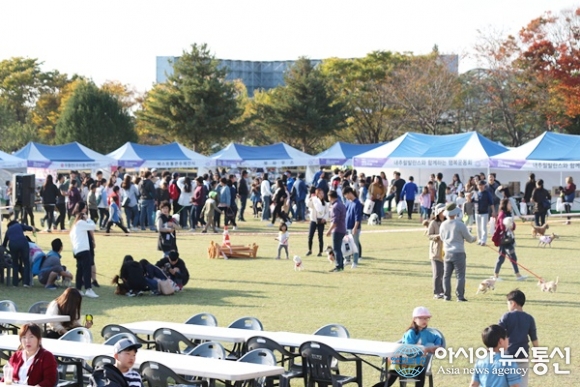 | 21일 세종시 교과서 박물관에서 열린 제3회 반려동물 문화축제에 참가한 시민들이 반려동물들과 함께 주최측이 마련한 부스를 찾아 다니며 즐거워 하고 있다./아시아뉴스통신=홍근진기자 |