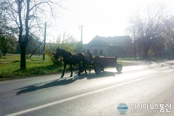 | 세르비아를 여행하면서 우연히 만나는 기쁨을 느꼈다. 시골길에서 만난 마차의 모습.(사진=강명구) |