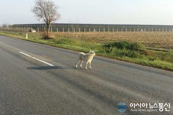 나도 역시 동행자가 생겨 한결 마음이 안정되는 것 같지만 이런 갓길도 없는 국도를 천방지축 이리저리 왔다 갔다 하는 녀석과 같이 가는 일이 운전자들에게 너무 방해가 될 것 같기도 하고 현실적으로 잠잘 때도 그렇고, 국경을 넘을 때도 문제가 될 것 같아 여러 번 쫒으려고 소리를 지르며 실랑이를 했지만 15km나 쫒아왔다.