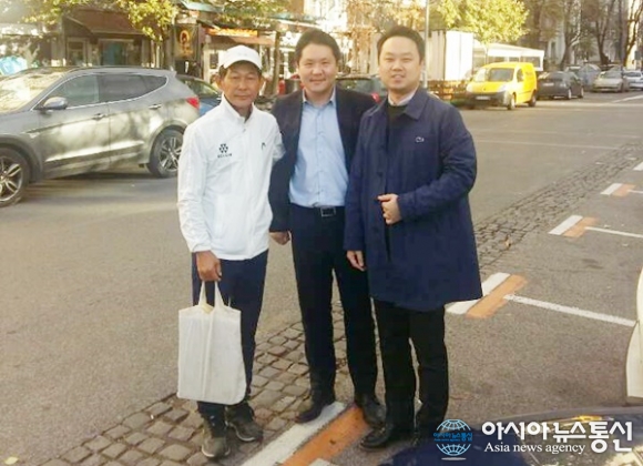 | 세르비아 대사관에서 마련해준 오찬을 마치고 조상훈, 최종희 서기관과 찍은 사진.(사진=강명구) |