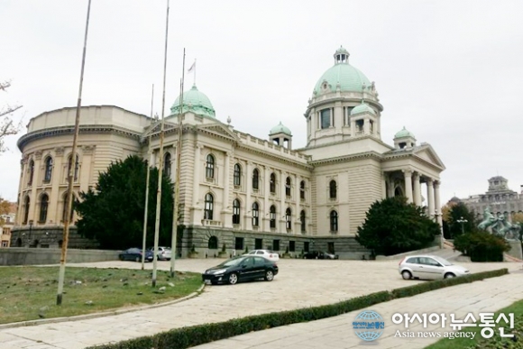 | 발칸의 고도이며 수륙교통의 요지인 베오그라드에 있는 세르비아 국회의사당 모습.(사진=강명구) |