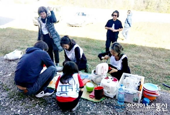 | 또뽈라에서 크라꾸예바츠까지 동행하며 점심에 닭백숙을 차리고 있는 김수임씨 가족들.(사진=강명구) |