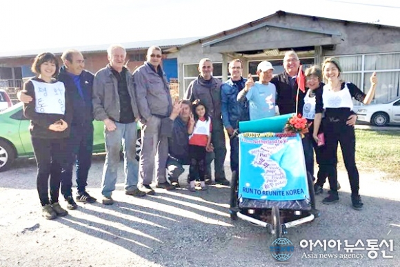 | 불가리아 소피아에서 온 김수임씨 아이들이 나와 한혈마에 앞장서 힘차게 달리고 있다.(사진=김나라) |