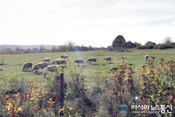 | 또뽈라에서 크라꾸예바츠로 가는 길목에 풀을 뜯는 양떼들이 가을하늘과 잘 어울린다.(사진=김나라) |
