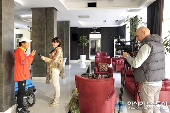 | 세르비아 전국방송 네트워크를 가진 보스포로스 TV가 강명구씨 인터뷰를 하고 있다.(사진=김나라) |