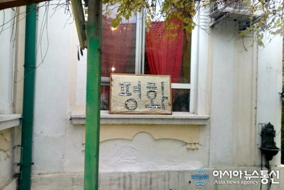 | 세르비아부터 도와준 김수임씨 가족이 사는 집 벽에 붙어 있는 '을사늑약 무효' 간판.(사진=강명구) |