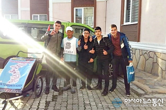 | 터키 에디르네에 들어서자 하굣길에 학생들이 형제의 나라아며 친근하게 다가온다.(사진=강명구) |