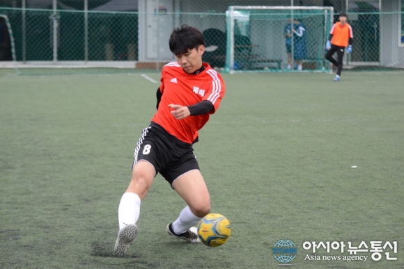 | 26일 충북 청주시 충북풋살클럽에서 제4회 직지배 풋살대회 고등부 경기가 이틀째 펼쳐지고 있다. 한 선수가 득점을 노리며 슈팅을 날리고 있다./아시아뉴스통신=정홍철 기자 |