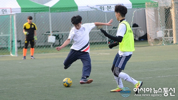 | 26일 충북 청주시 충북풋살클럽에서 이틀간의 고등부 경기를 마감하며 3·4위전으로 어벤져스와 인직FS가 맞붙었다. 2대2 무승부로 승부차기 끝에 어벤져스가 5대4로 3위를 차지했다./아시아뉴스통신=정홍철 기자 |