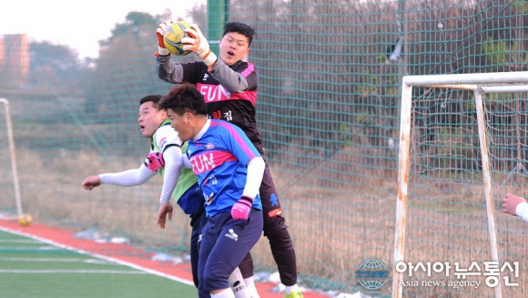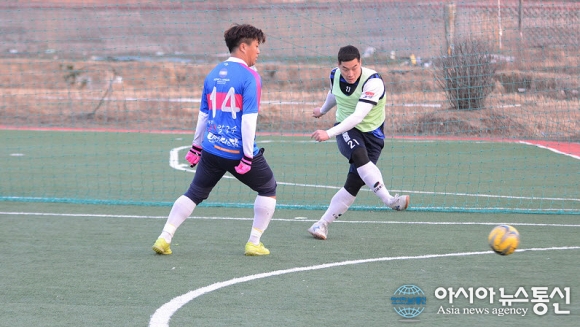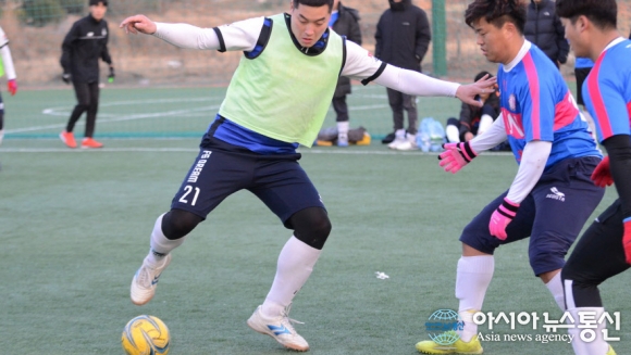 | 26일 충북 청주시 공항풋살에서 이틀간 펼쳐진 제4회 직지배 풋살대회 일반부 경기를 마감하며 3·4위전에서 펀풋살과 FS드림이 맞붙었다. 경기결과 3대2로 펀풋살이 3위를 차지했다./아시아뉴스통신=정홍철 기자 |