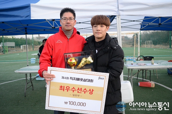 | 26일 충북 청주시 공항풋살구장에서 열린 제4회 직지배 풋살대회 일반부 최우수선수상은 1위팀 울프의 이상호 선수가 차지했다./아시아뉴스통신=정홍철 기자 |